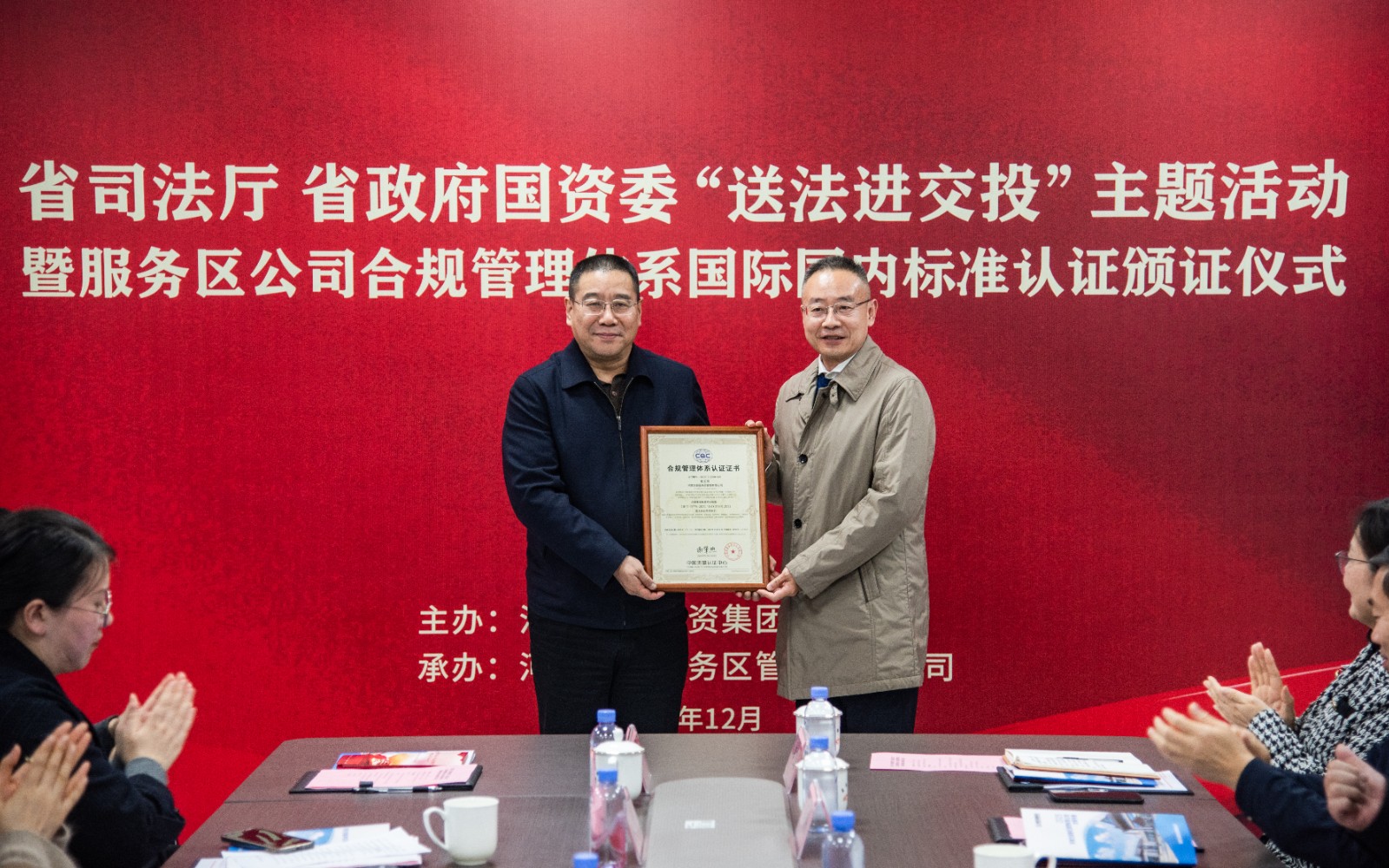 省司法廳、省政府國資委聯合開展“送法進交投”憲法宣傳周主題活動暨服務區公司合規管理體系國際國內標準認證頒證儀式